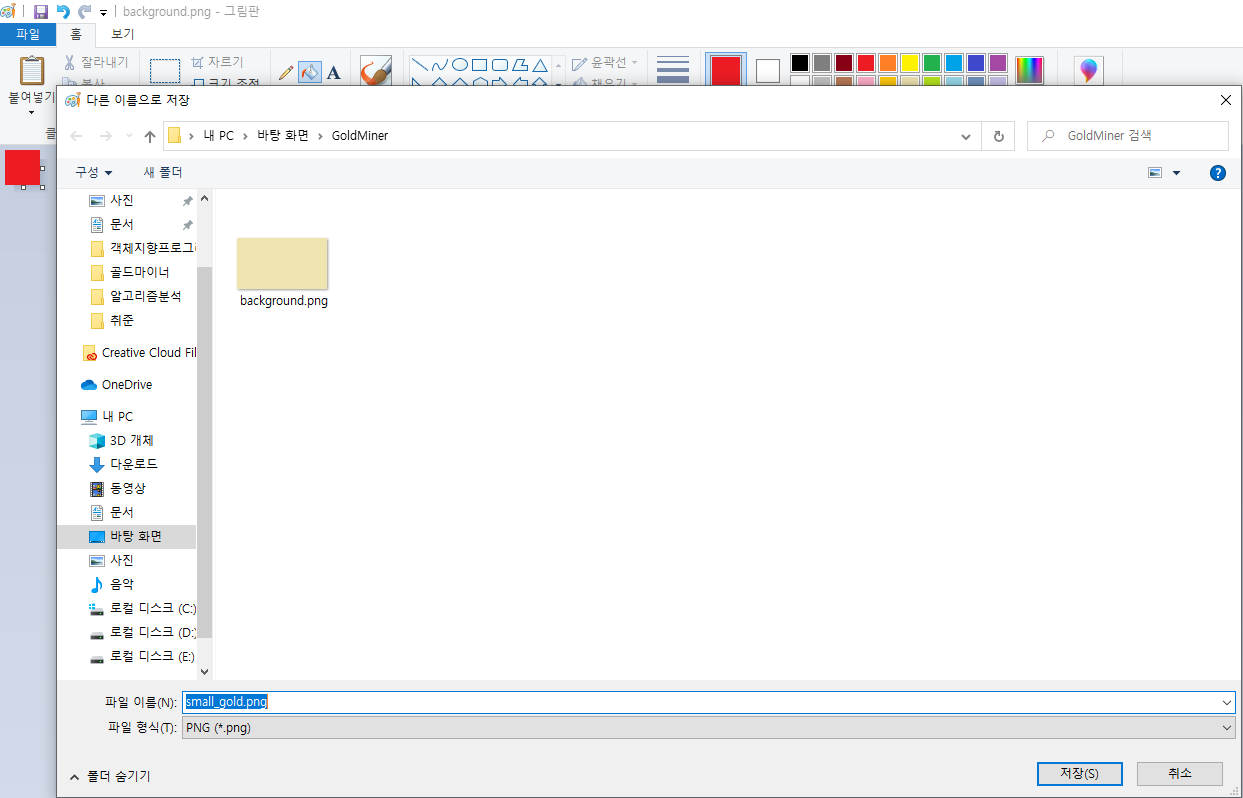 그리고 small_gold.png로 저장해줍니다.