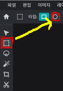 우리는 이 큰 금을 원형으로 만들기 위해서 왼쪽 메뉴 중에서 두 번째에 있는 기본 선택 버튼을 눌러줍니다.
