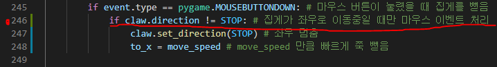 게임 루프 내 마우스 이벤트 처리 코드를 수정해서 문제를 해결했습니다.