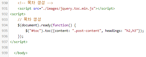 이걸 받아서 넣어놔야 플러그인을 사용해서 목차를 만들 수 있는 것이죠.