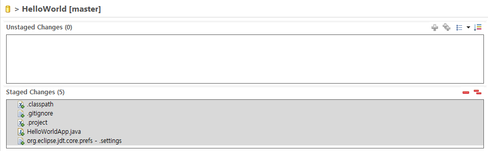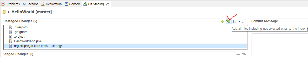 commit하고 싶은 파일들을 마우스로 끌어다가 Staged Changes에 넣거나, 한번에 넣어주는 ++버튼을 눌러줍니다.