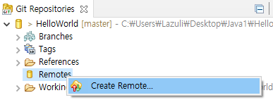 여기서 Remotes 폴더에서 오른쪽 버튼을 누르고 Create Remote를 눌러줍니다.