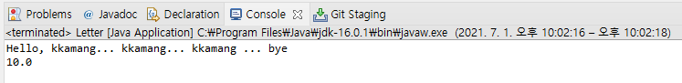System.out.println("Hello, "+name+"... "+name+"... kkamang ... bye"); // name에 있는 값만 바꾸면 한번에 변경 가능!
