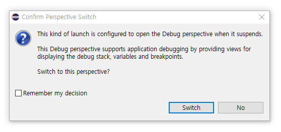 Debug모드에 유용한 화면으로 바꿔주기 때문에 Switch를 누르는 것이 일반적입니다.