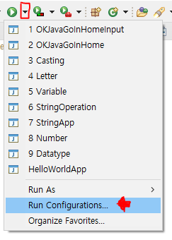 이 버튼을 누르고 Run Configurations에 들어갑니다.