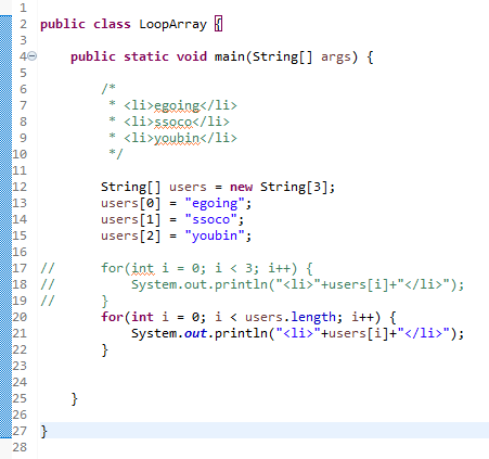 // String users = "egoing, ssoco, youbin"; // 이렇게 관리할 수 있겠지만, 불편하다!