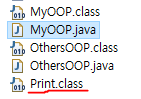 MyOOP.java를 실행했을 때 Print라는 클래스를 담은 Print.class파일이 생성됩니다.