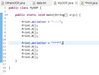 Print라는 클래스를 만들고 delimiter 변수와 PrintA, PrintB 메소드를 Print 클래스로 옮깁니다.