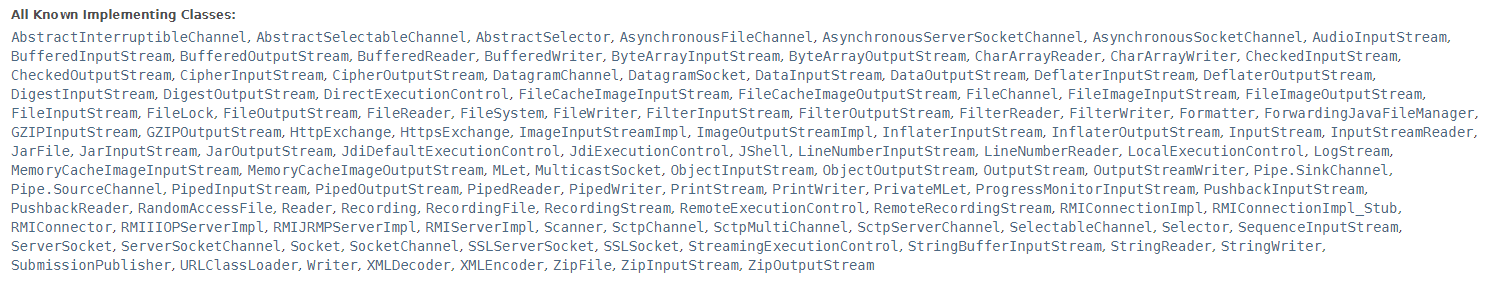 즉 여기 적혀있는 클래스들은 전부 AutoCloseable이라는 인터페이스를 implements했기 때문에 모두 close()를 사용할 수 있다는 말이 됩니다.