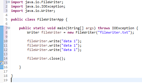 아래의 FileWriter 클래스를 보면 우리가 지금까지 배웠던 내용들이 녹아있습니다.