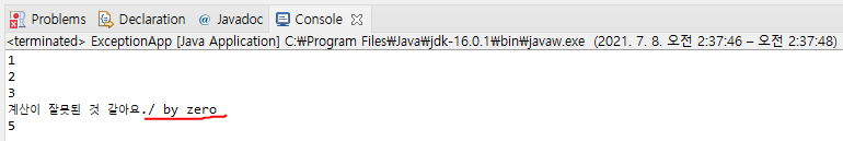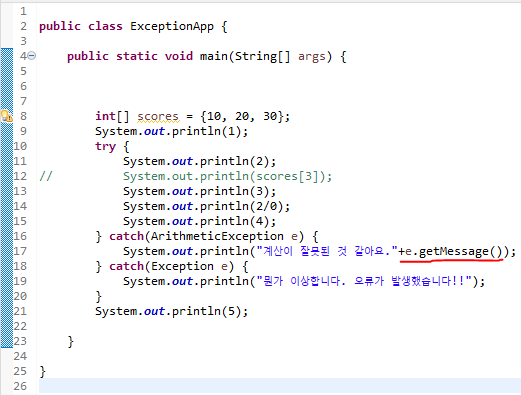 System.out.println("계산이 잘못된 것 같아요."+e.getMessage());
