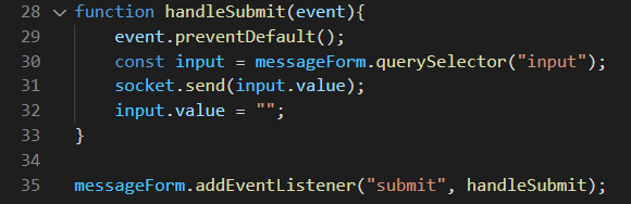 Send 버튼을 눌렀을 때 발생하는 이벤트인 submit를 처리하기 위한 이벤트리스너도 만들어야겠죠?