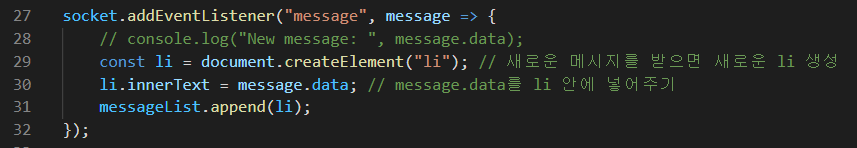 li.innerText = message.data; // message.data를 li 안에 넣어주기