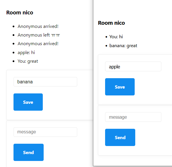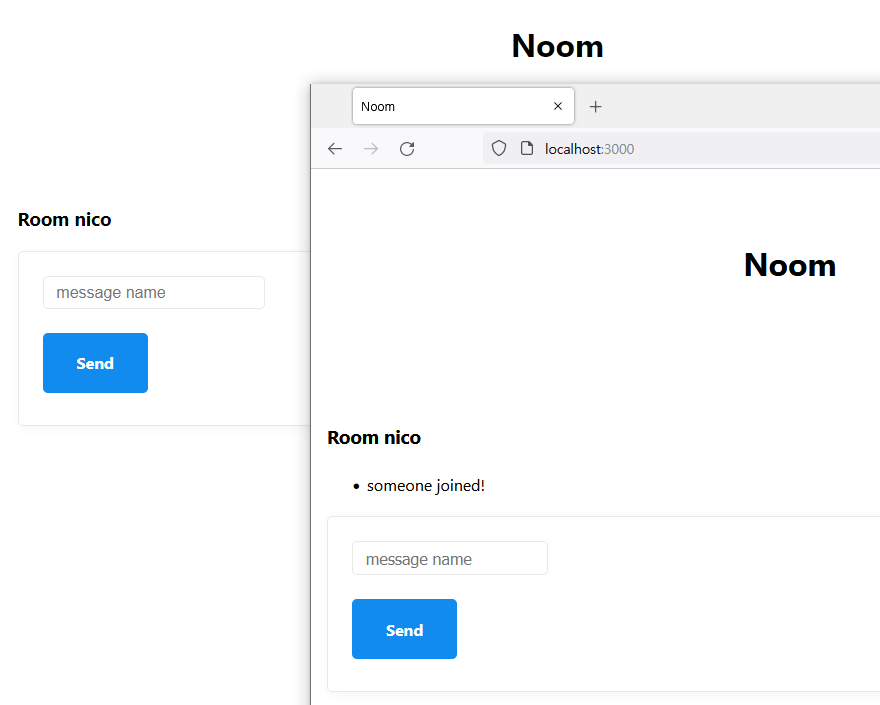 여기까지 완성하면, 서로 다른 두 브라우저에서 각각 접속했을 때 아래와 같은 알림이 정상적으로 출력되는 것을 확인하실 수 있습니다!
