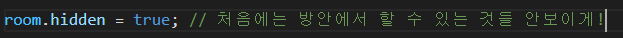 아, 추가로 방에 들어가기 전에는 닉네임이나 메시지를 보낼 수 있는 form 박스가 보이지 않도록 app.js에서 querySelector로 가져온 room에 hidden 속성을 부여해봅시다!
