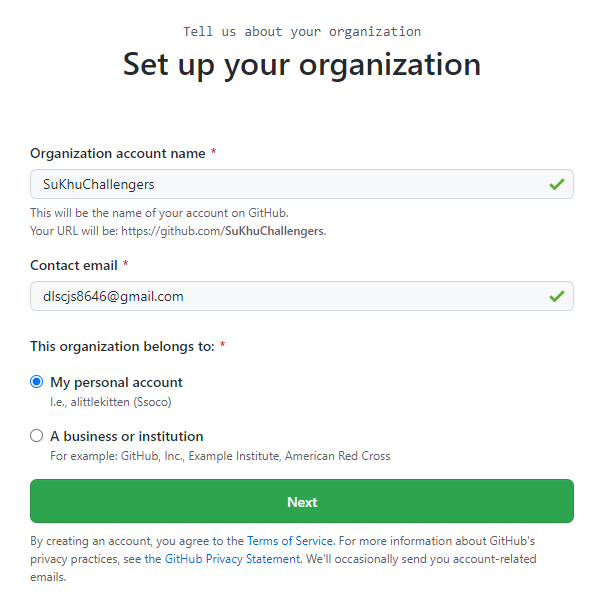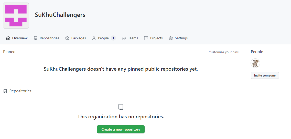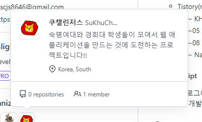 오늘은 깃헙에 쿠챌린저스 팀에서 진행되는 프로젝트를 담당하는 Organization을 만들면서 진행되는 과정들을 기록으로 남겨보려고 합니다!
