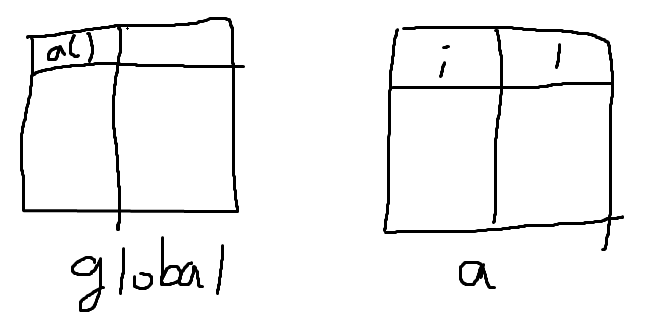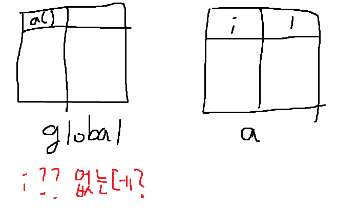 이건 a()라는 스코프에 i가 1이라는 데이터가 들어갔다는 이야기와 같은 말입니다.