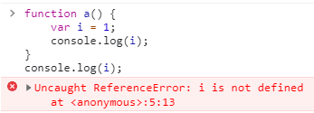 a() 밖에 있는 console.log()는 global에서 i를 찾지만 찾을 수 없는 것이죠!