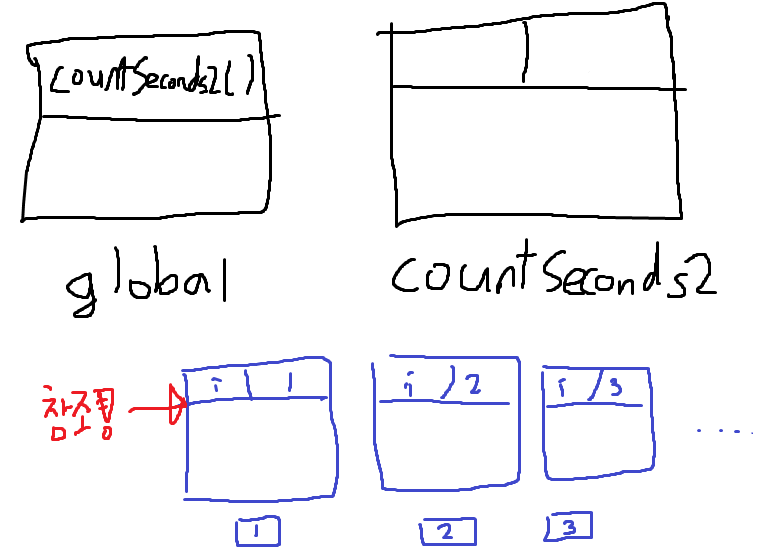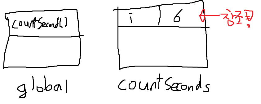 따라서 1초에 1번씩 countSeconds() 스코프 내에 있는 i인 6을 출력하게 됩니다.