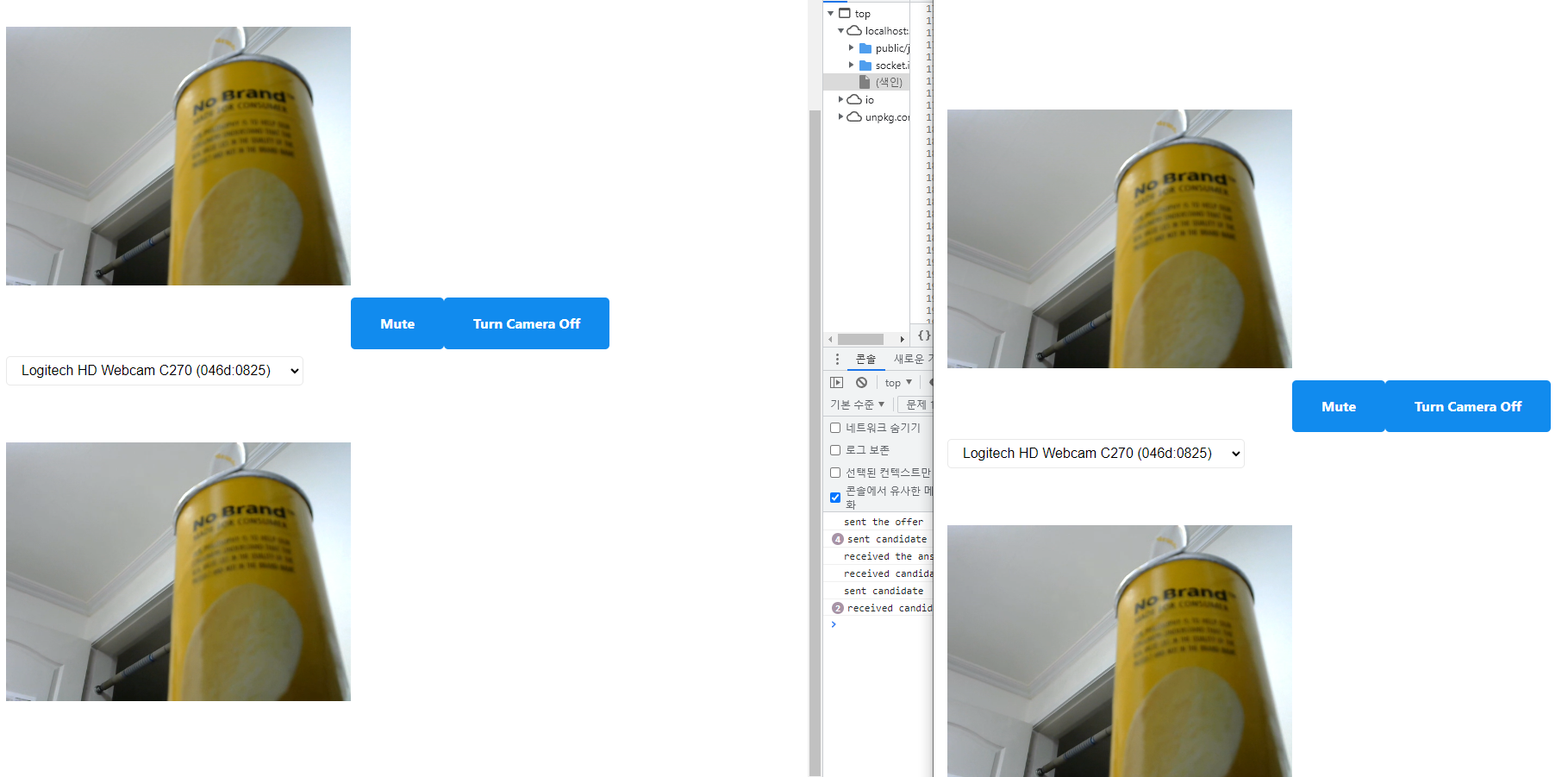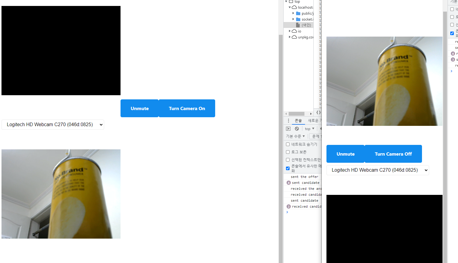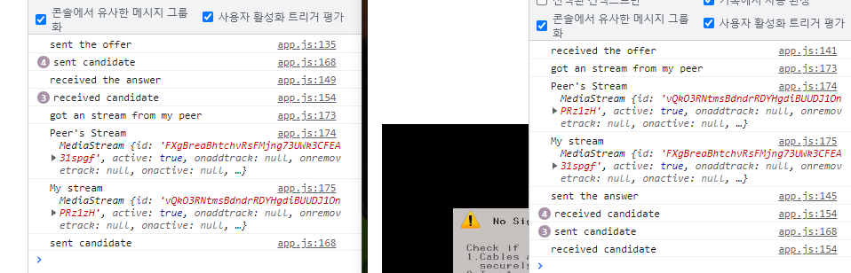 카메라를 바꾸게 되면 상대 브라우저에서는 인식하지 못하는 문제가 발생합니다.