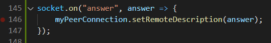 마지막으로 answer 이벤트를 브라우저에서 받으면 RemoteDescription에 넣어줘야겠죠?