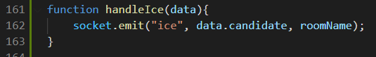 socket.emit("ice", data.candidate, roomName);