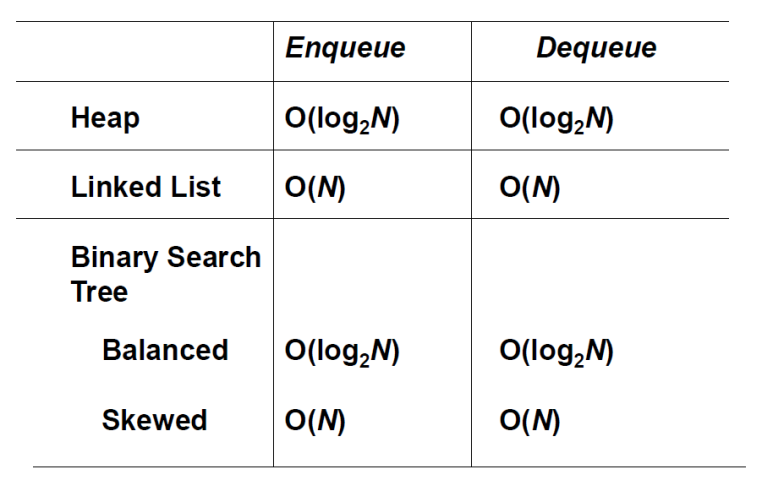 각종 자료구조를 이용하여 우선순위큐를 만들게 된다면 어떤 시간복잡도가 나오는지에 대해서 간략하게 알아봅시다!