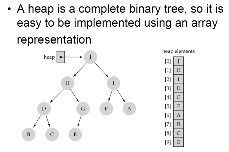 트리구조, 그 중에서도 완전 이진 트리 형태를 가지고 있습니다.