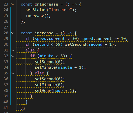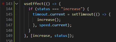 그런데?? useEffect의 의존성 배열을 increase로 바꾸고 나니 increase에 경고밑줄이 생겼습니다.