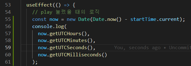 이제 시간 데이터들은 startTime.current, pauseTime.current에 저장될 것입니다.