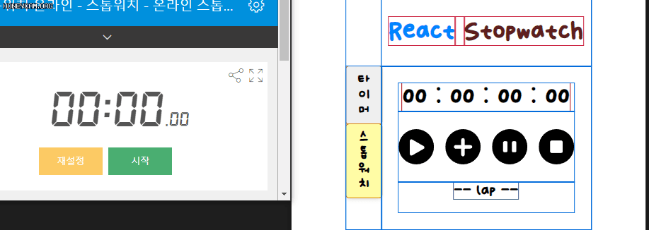 이제 브라우저에서 돌려보면? 실제 시간과 현재 스톱워치의 괴리감이 느껴집니다.