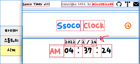 부모 엘리먼트의 포지션을 relative로 설정하고, 연월일을 출력하는 부분의 속성을 absolute로 설정했습니다.