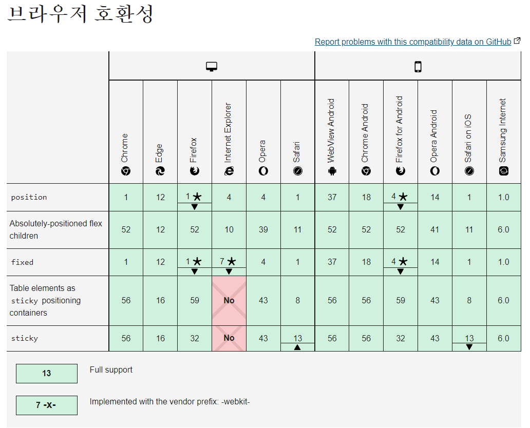 다만 주의해야 할 것은 sticky속성이 모든 브라우저에서 사용되는 것은 아니기 때문에, 별도의 polyfill 과정이 필요할 수 있다는 점을 생각하셔야 합니다!