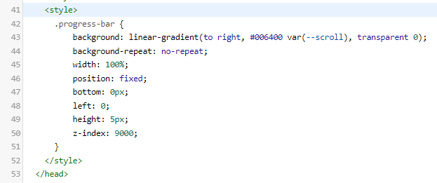 background: linear-gradient(to right, #006400 var(--scroll), transparent 0);