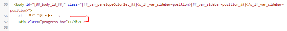 html 탭에 들어가서 body의 바로 아래에 프로그레스바라는 div 태그를 만들어줍니다.