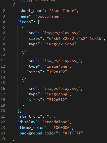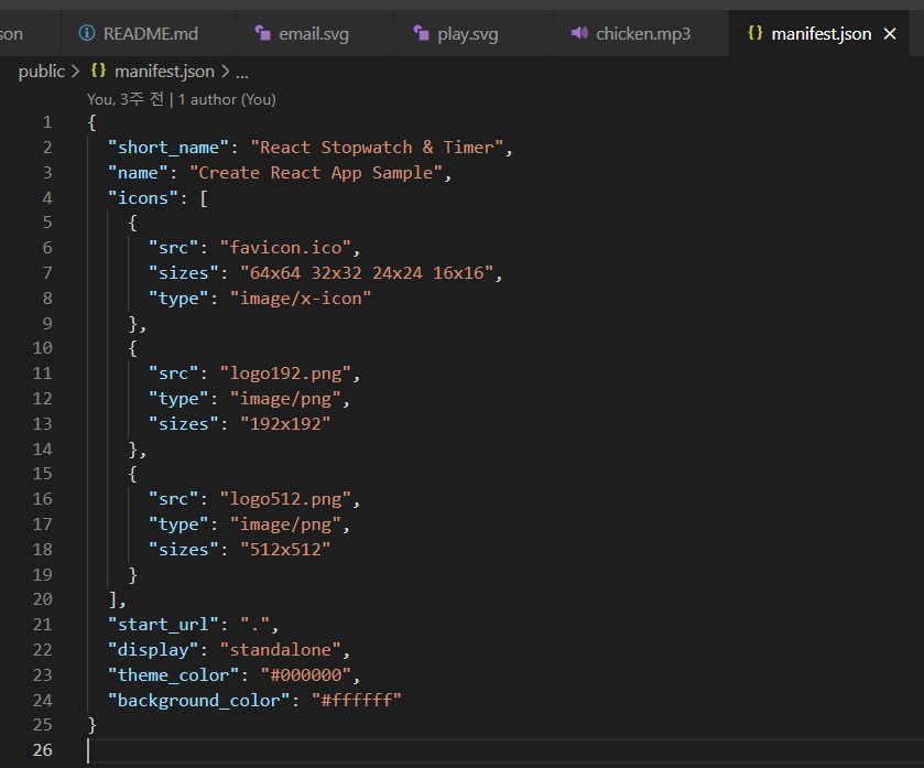 그동안 거의 확인하지 않았던 public 폴더를 오랜만에 확인했더니 manifest.json이라는 파일이 있더라구요?