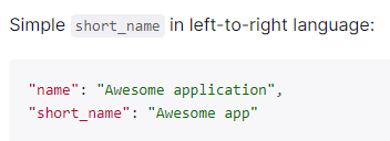 short_name은 공간이 부족한 경우 이름을 짧게 표시하기 위해서 만들어주는 옵션입니다. 보통 메인화면에서 설치된 아이콘의 이름으로 표시됩니다.