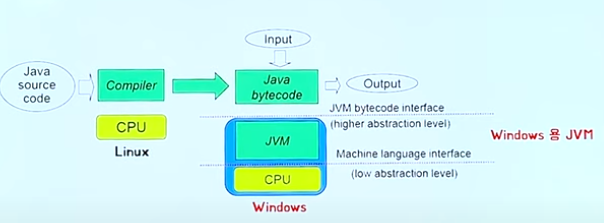 Java가 등장하던 시기는 새로운 운영체제 및 디바이스가 마구마구 출시되기 시작하던 시절이었고, 모든 운영체제 및 기종들에 대해서 컴파일을 고려하는 것은 굉장히 어려운 일이었습니다.