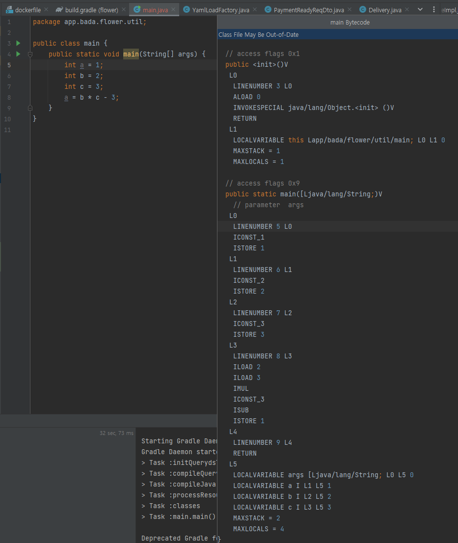 (왼쪽이 .java 파일, 오른쪽이 .class 바이트코드입니다)