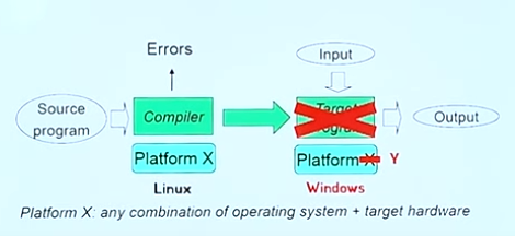 Java 이전 C와 C++의 경우 컴파일 플랫폼과 타겟 플랫폼이 다른 경우 프로그램이 동작하지 않는 경우가 있었습니다.