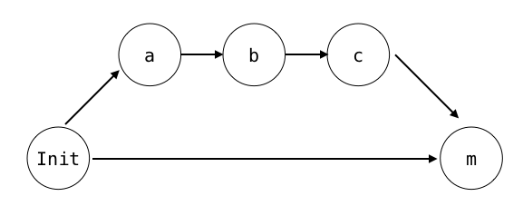 한 줄로 쭉 이어졌지만, 머지했다는 커밋이 없죠?