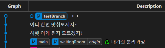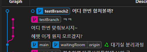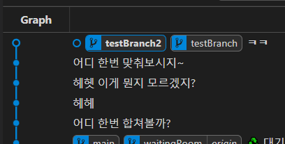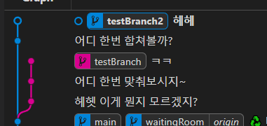 다시 초기 상태로 돌아왔고, testBranch2에 커밋을 더 쌓아보았습니다.