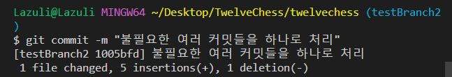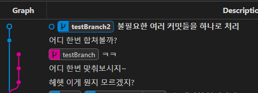이 상태에서 testBranch에서의 변경사항 3개를 하나로 뭉뚱그려서 처리할 수 있습니다.
