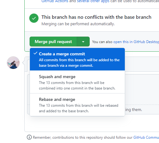 GitHub에서 Pull Request를 날릴 때 유심히 살펴봤다면, 아래와 같은 Merge 전략을 확인하실 수 있었을 것입니다.