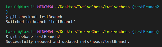 아래 상황에서는 단순히 testBranch2의 HEAD를 testBranch로 옮기기만 하면 되는 것이죠.