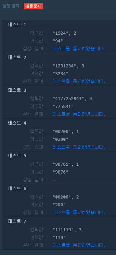 출처 : 프로그래머스 코딩테스트 연습 고득점 KIT, programmers.co.kr/learn/courses/30/lessons/42883