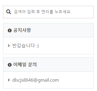 오늘은 간단하게 공지사항 박스를 이용해 사이드바 박스를 하나 더 만들고 그 공간에 필요한 정보(이메일 문의)를 넣어봤습니다.