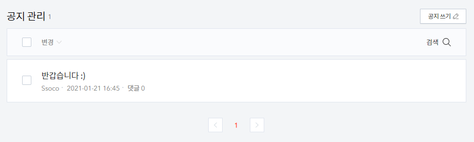 들어가면 바로 공지를 작성할 수 있고, 작성한 공지사항의 제목이 사이드바 공지사항에 뜨게 됩니다.