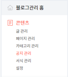 고래 스킨을 처음 받아서 적용을 하면 공지사항 탭만 존재합니다.