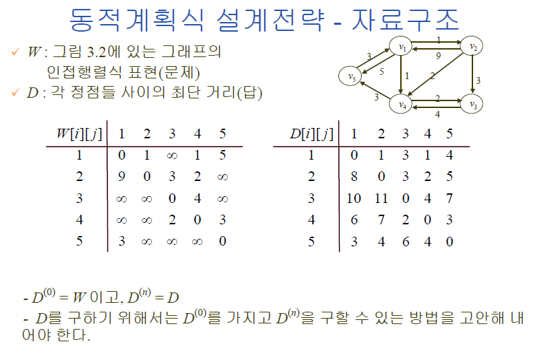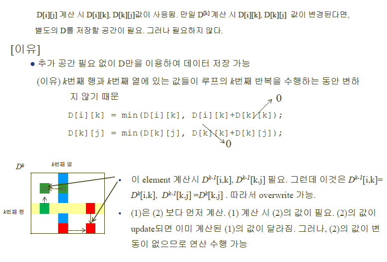for k in range (n): # 첨자를 맨 앞에 적어야 순서대로 계산됨 - 추가공간 필요 없이 D만으로 데이터 저장 가능